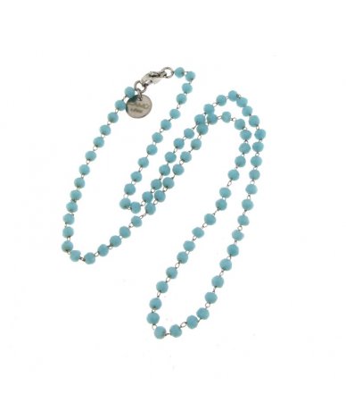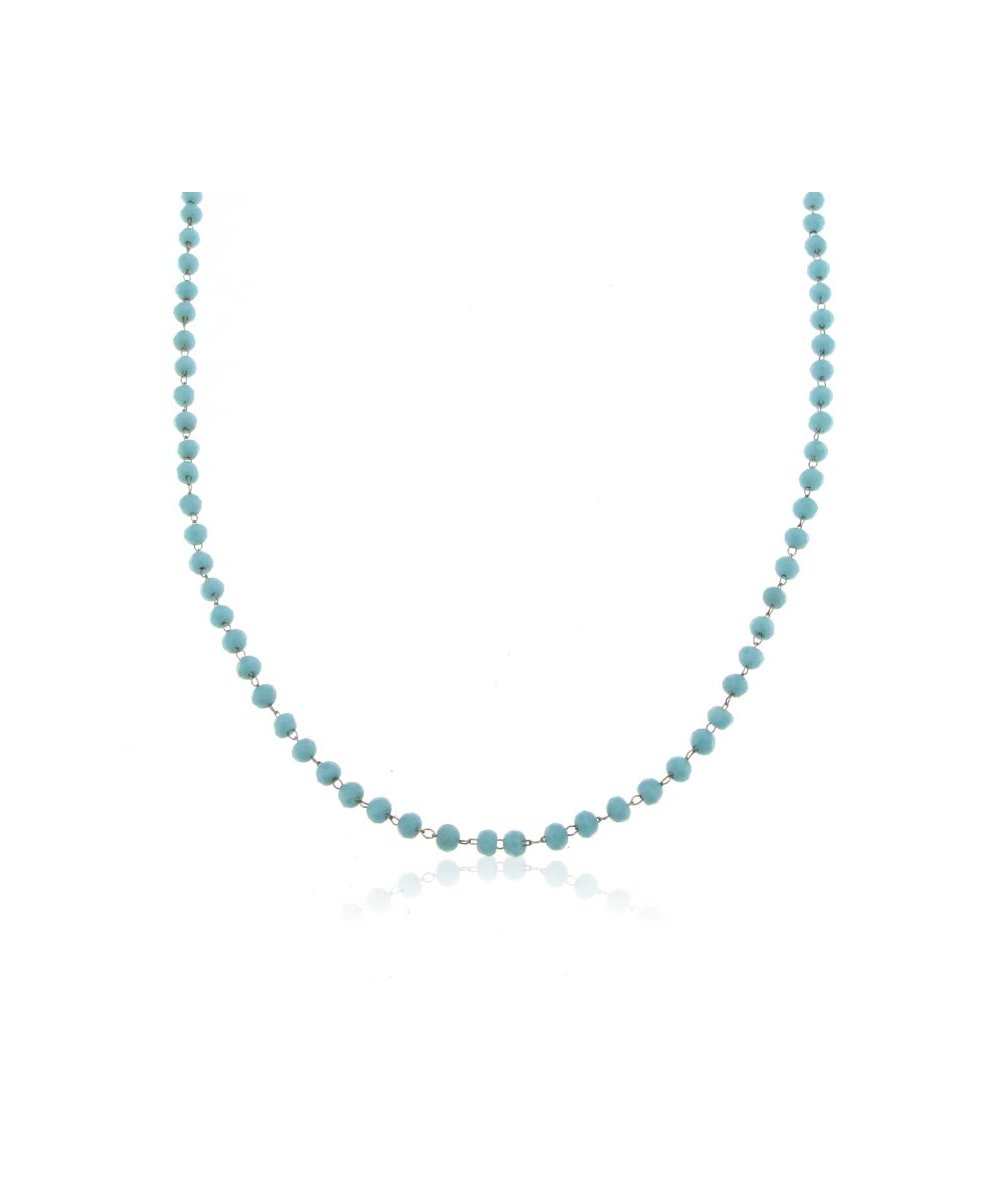 Collana acciaio inox con sfere in vetro colore turchese