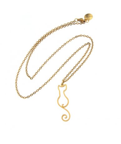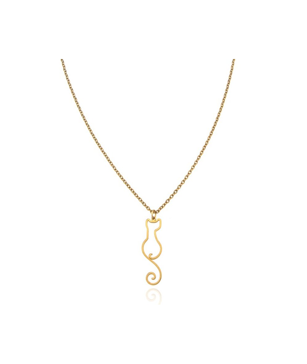 Collana in acciaio inox oro 18k con pendente gatto stilizzato