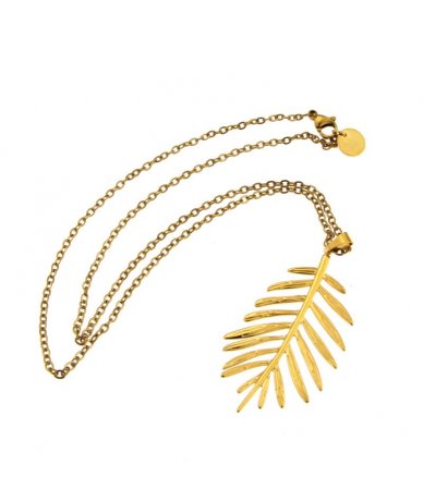 Collana lunga con pendente foglia in acciaio inox oro 18k
