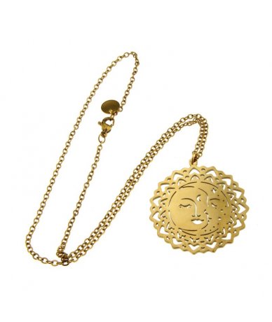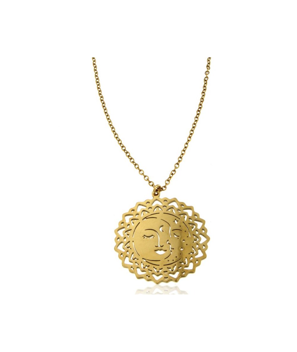 Collana lunga con pendente grande sole luna traforato in acciaio inox oro 18k