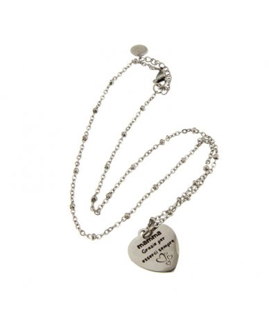 Collana in acciaio inox con pendente cuore inciso "mamma grazie per esserci sempre"