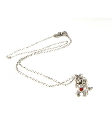 Collana in acciaio inox con charm cane con cuore smaltato rosso
