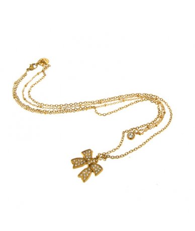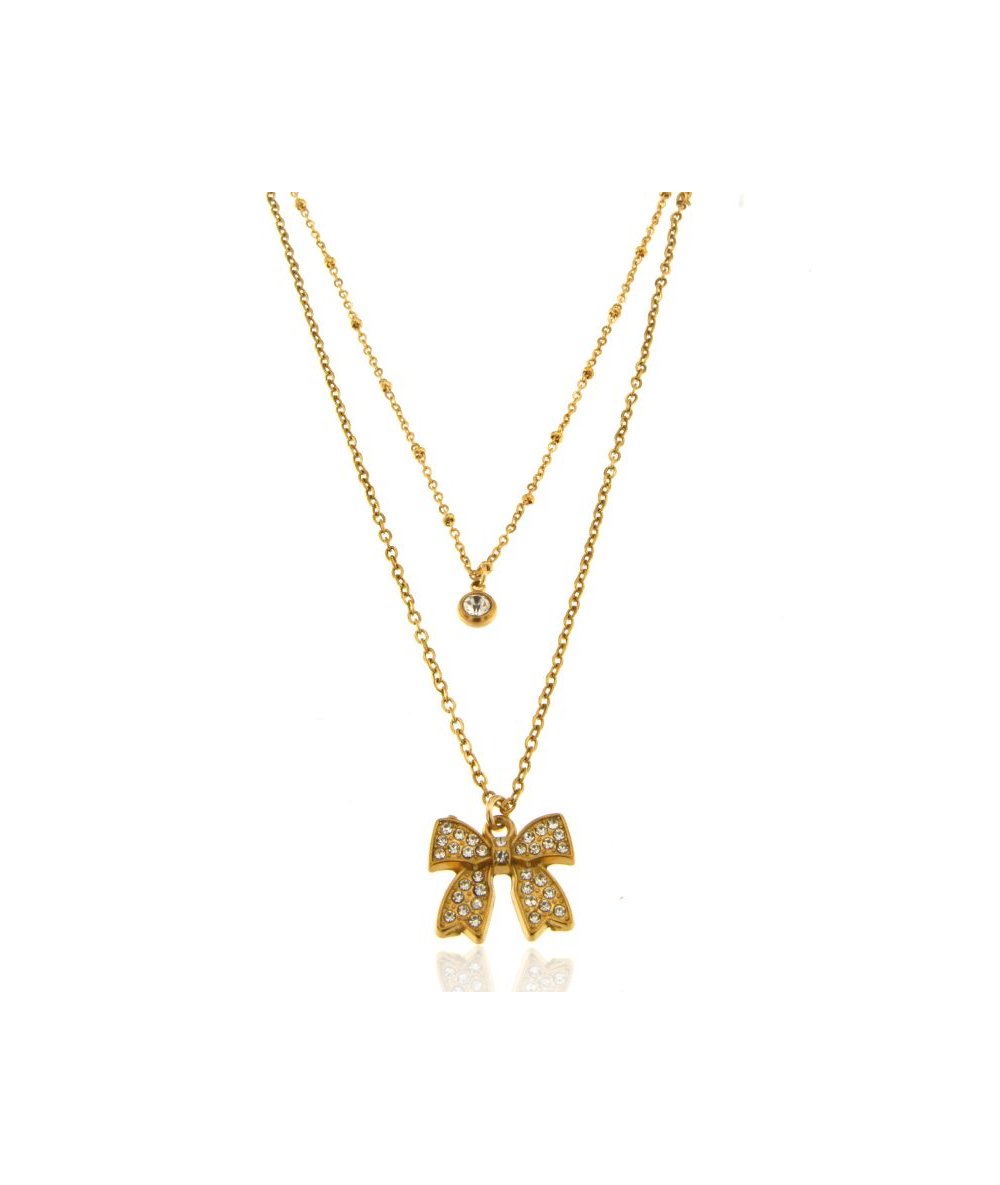 Collana multifilo in acciaio inox oro 18k con pendente fiocco con strass