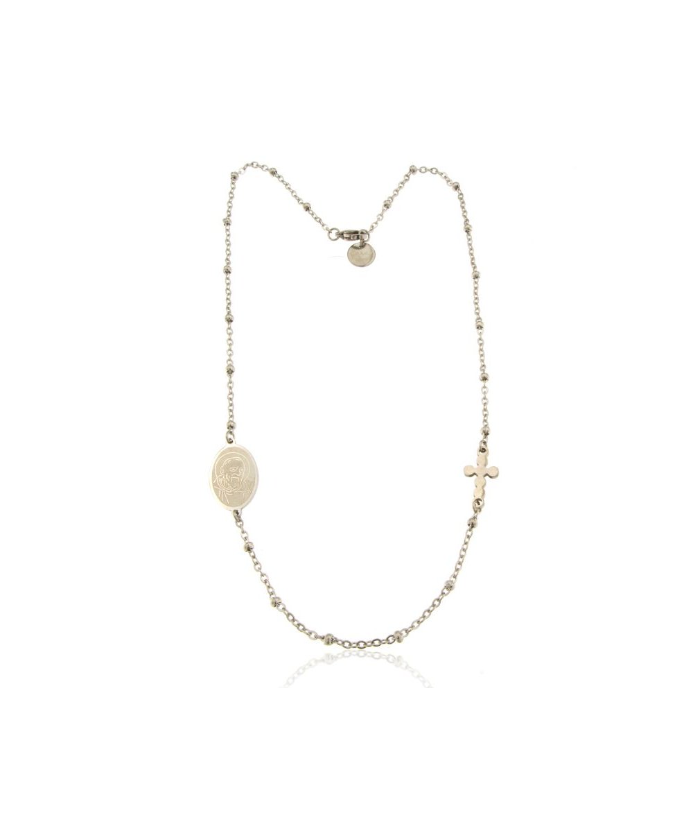 Collana rosario Padre Pio in acciaio inox