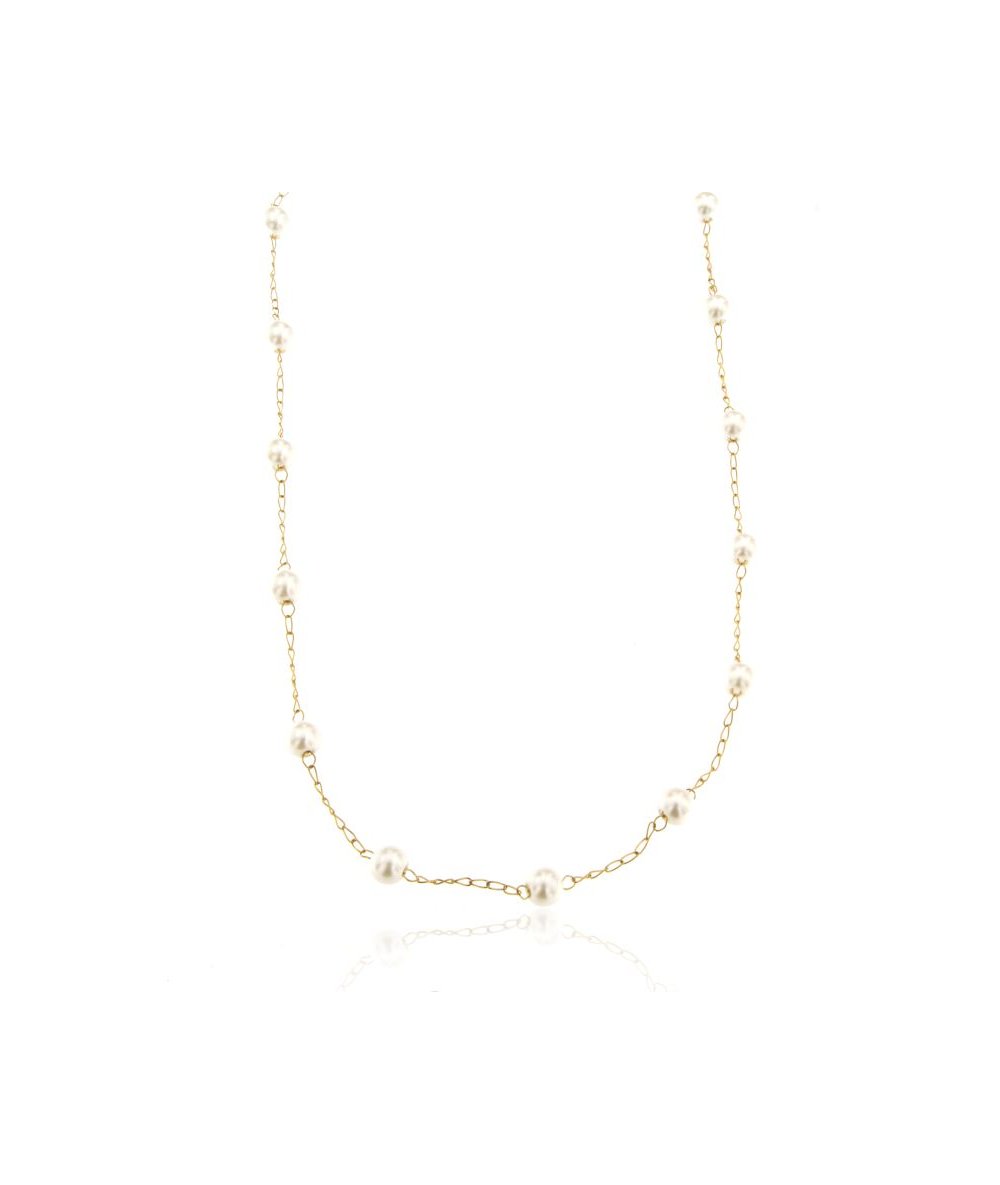 Collana in acciaio inox placcato oro 18k e perle bianche