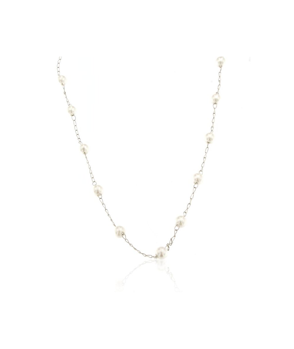 Collana in acciaio inox e perle bianche