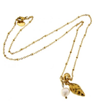 Collana catena con pendente conchiglia e perla di fiume in acciaio inox placcato oro 18k