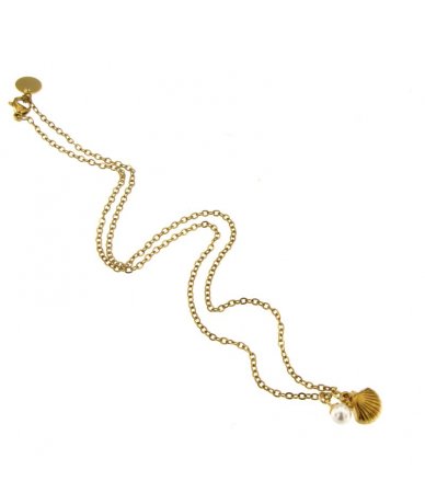 Collana con pendente conchiglia e perla in acciaio inox placcato oro 18k