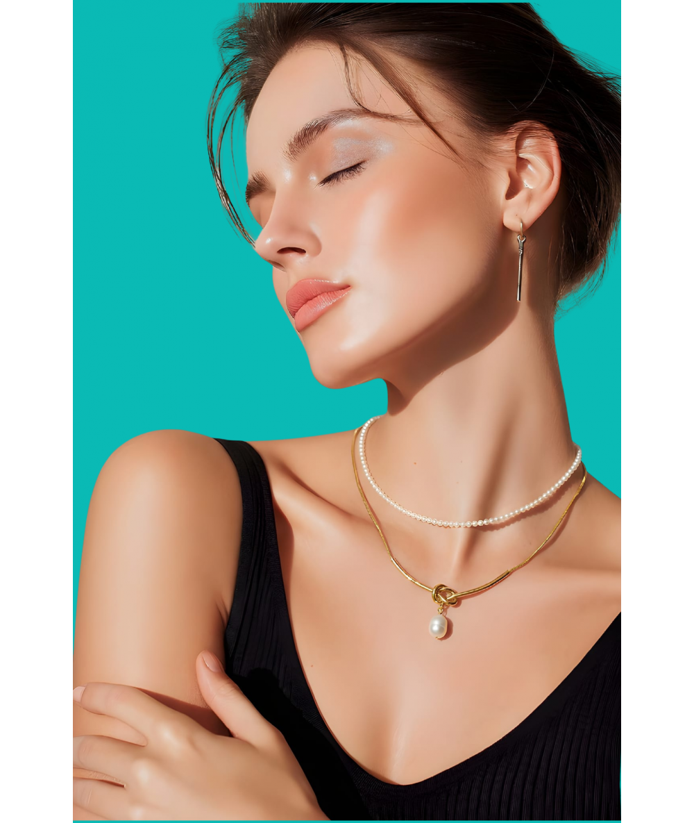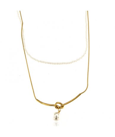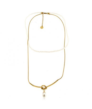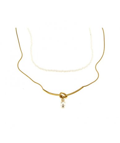 Collana doppio filo con pendente perla in acciaio inox placcato oro 18k