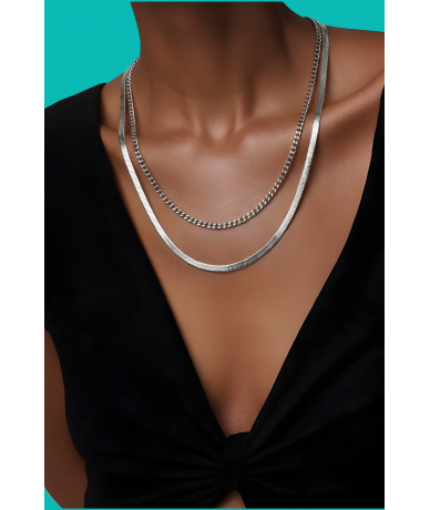 Collana doppio filo spina di pesce e catena in acciaio inox