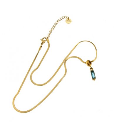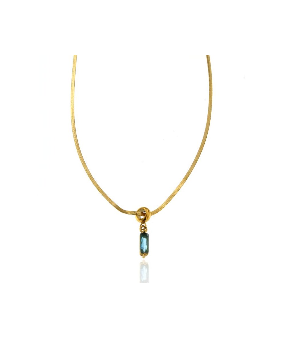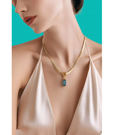 Collana spina di pesce con pendente zircone cubico blu fiordaliso in acciaio inox placcato oro 18k