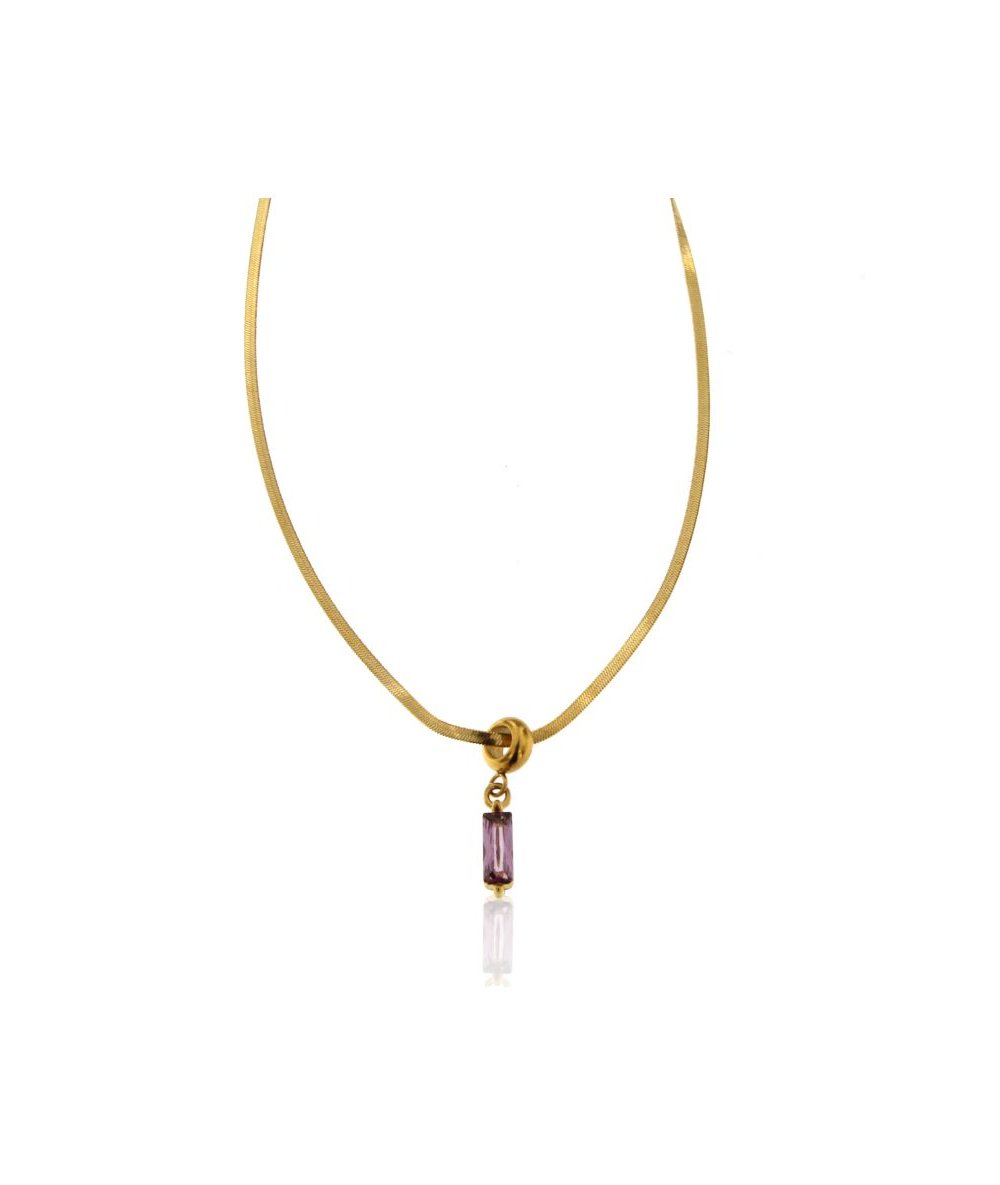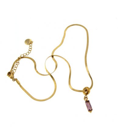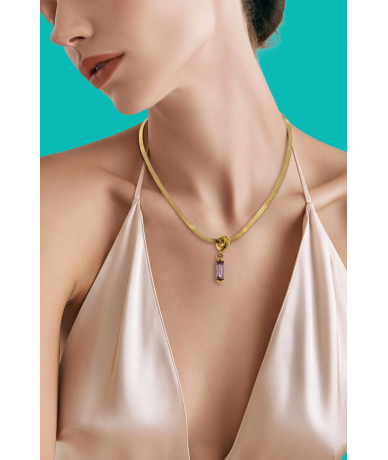 Collana spina di pesce con pendente zircone cubico viola in acciaio inox placcato oro 18k
