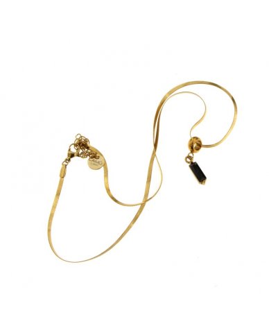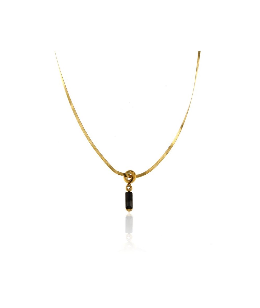 Collana spina di pesce con pendente zircone cubico nero in acciaio inox placcato oro 18k