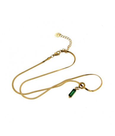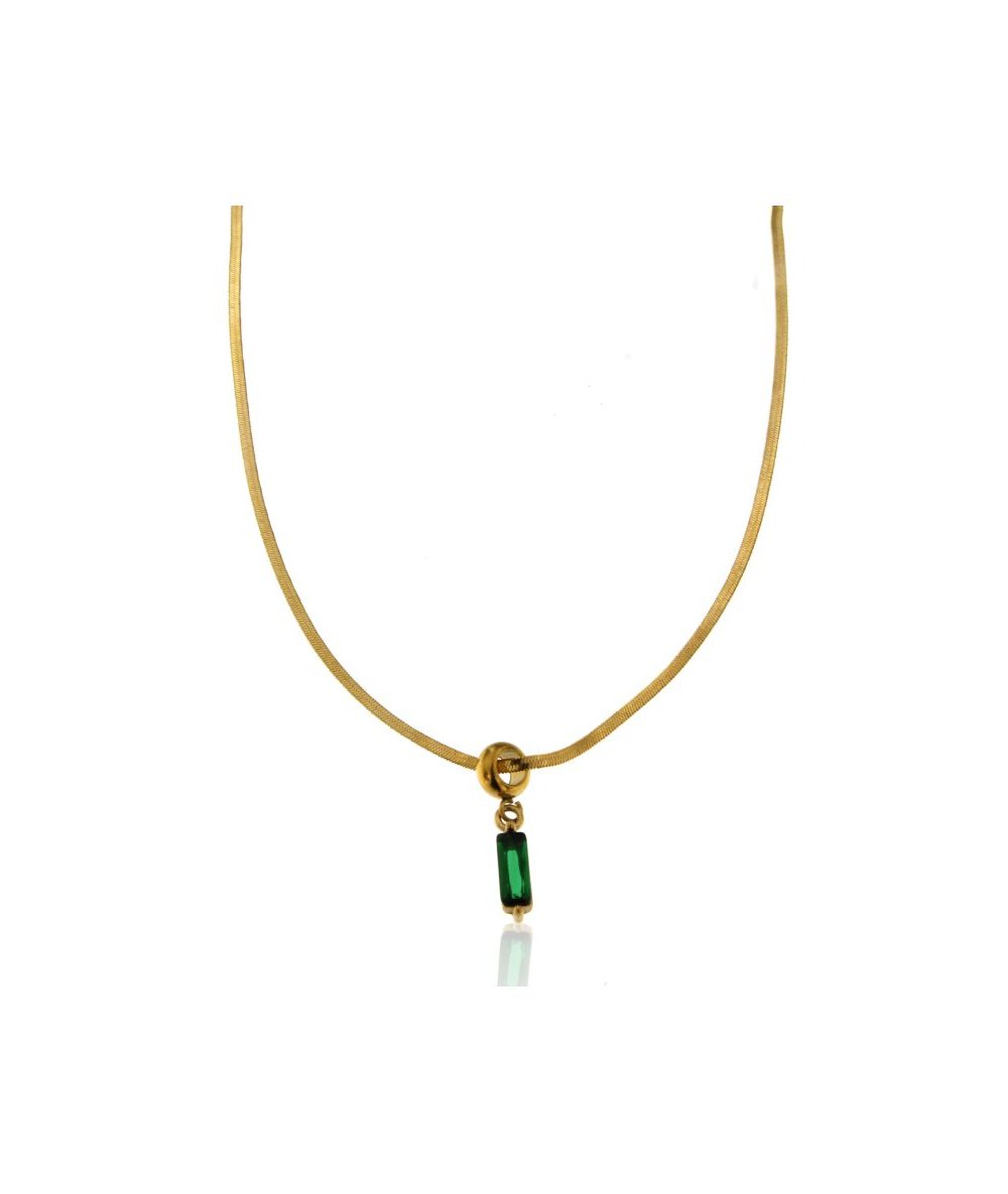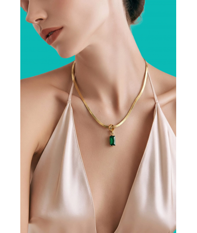 Collana spina di pesce con pendente zircone cubico verde in acciaio inox placcato oro 18k