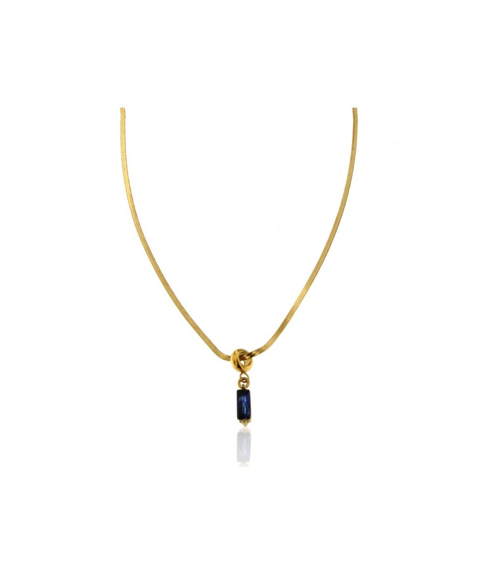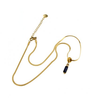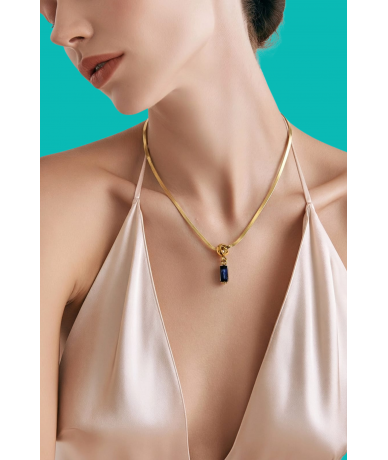 Collana spina di pesce con pendente zircone cubico blu in acciaio inox placcato oro 18k