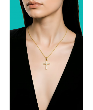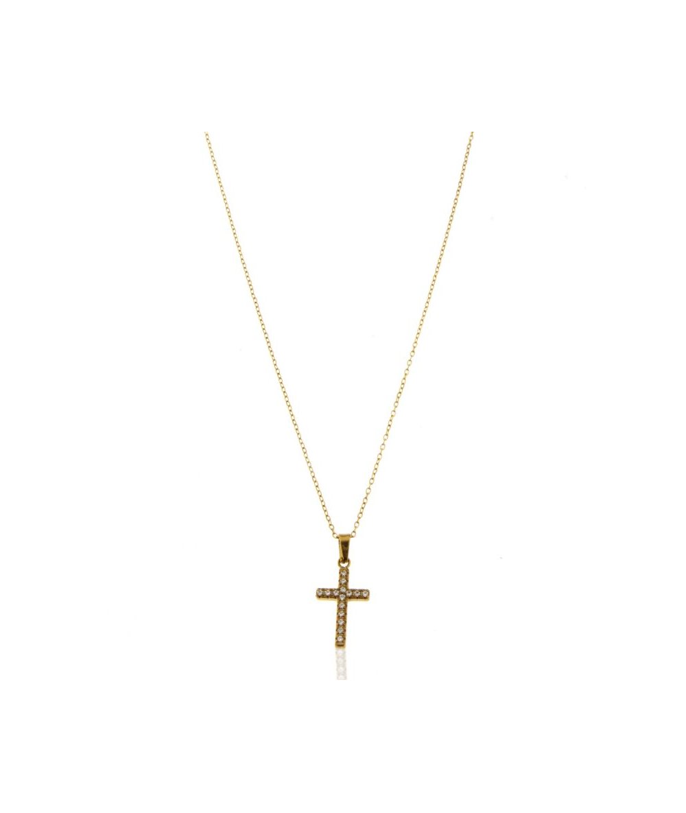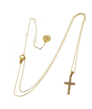 Collana con pendente croce di zirconi in acciaio inox placcato oro 18k