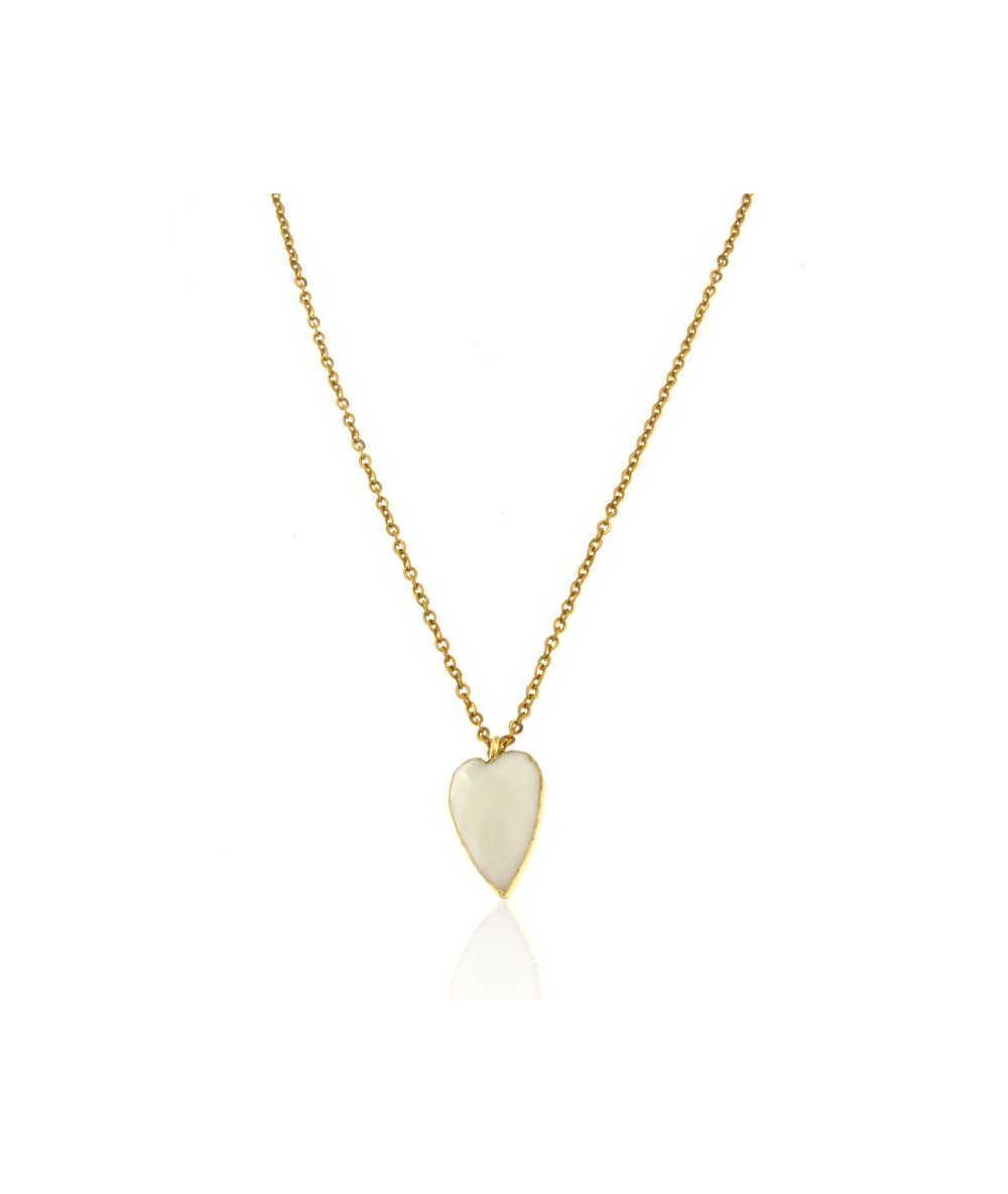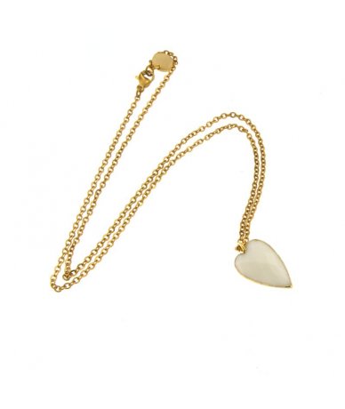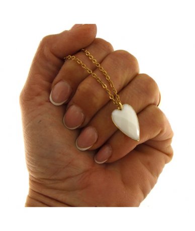 Collana con pendente cuore di pietra naturale bianco in acciaio inox placcato oro 18k