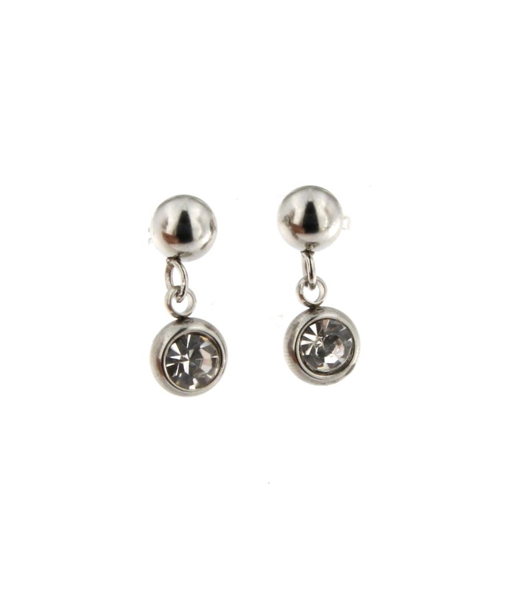 Orecchini pendenti piccoli in acciaio inox con pendente punto luce cristal