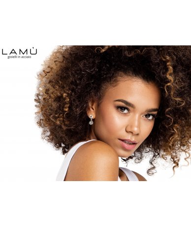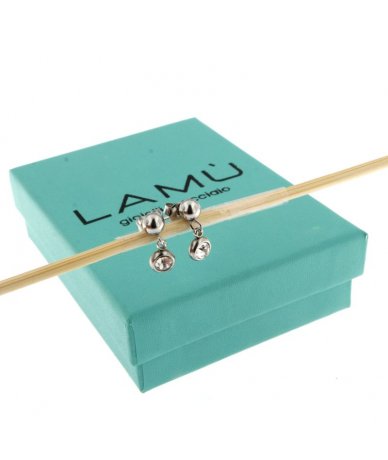 Orecchini con supporti a sfera in acciaio inox e pendenti punti luce con base in acciaio inox
