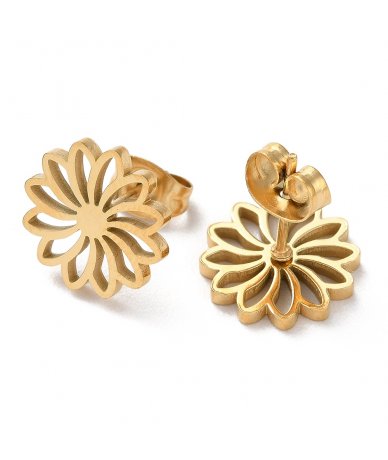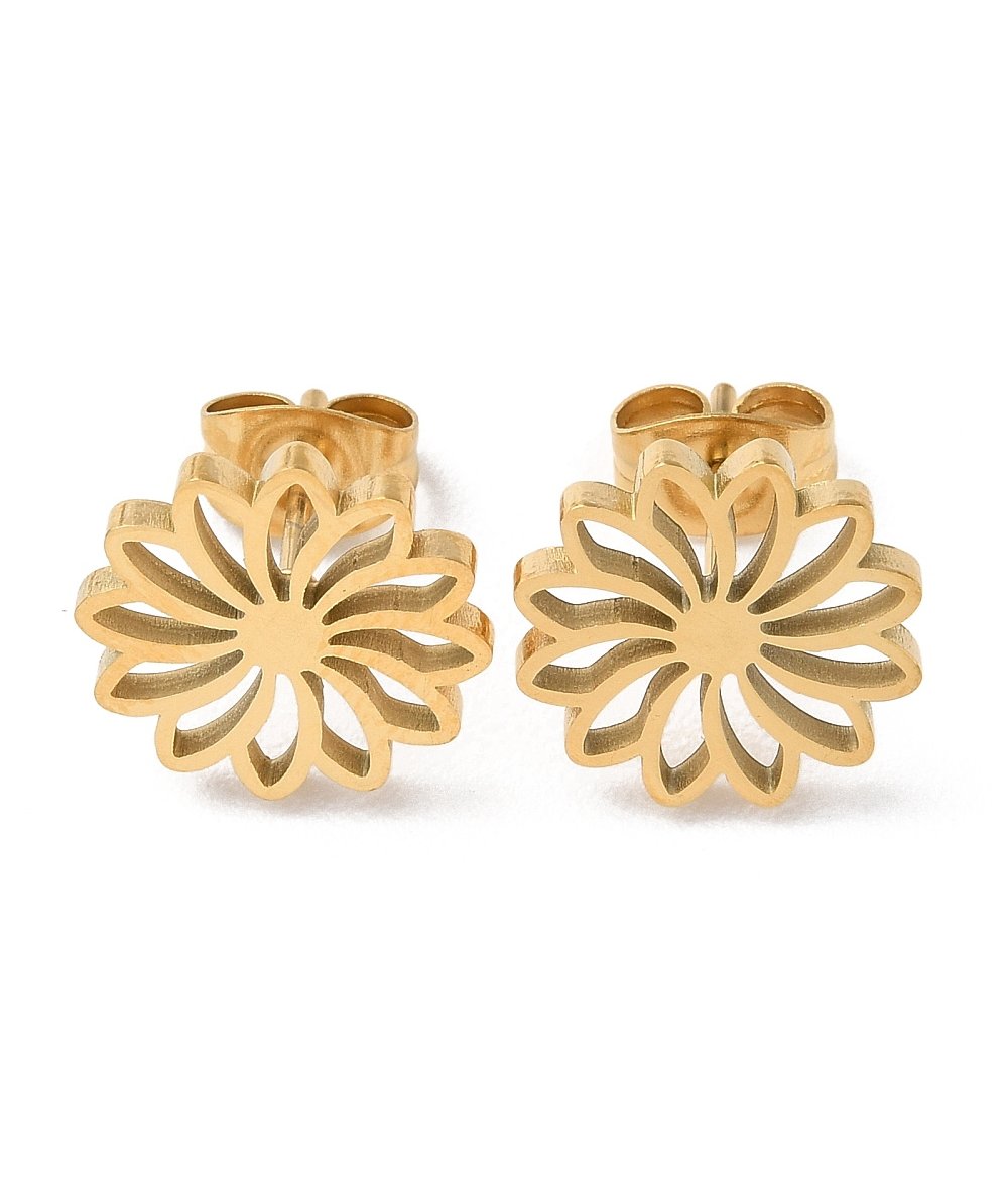 Orecchini fiore a lobo in acciaio inox oro