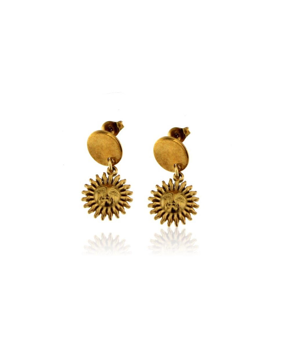 Orecchini a lobo in acciaio inox oro 18k con pendente sole