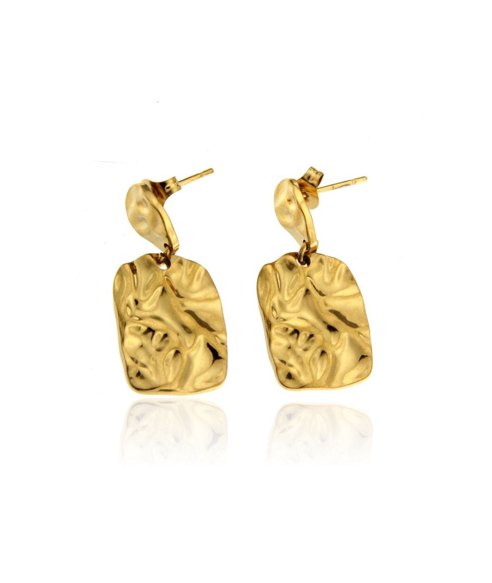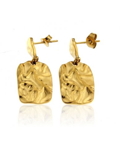 Orecchini pendenti con rettangolo martellato in acciaio inox oro 18k