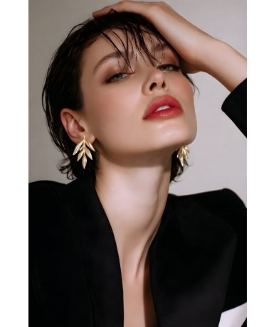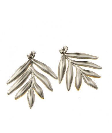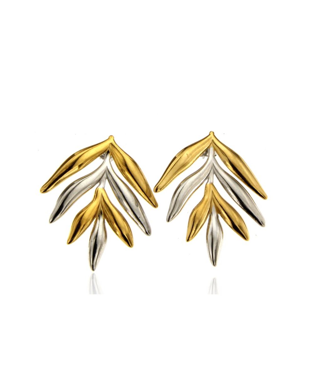 Orecchini foglia in acciaio inox bicolore