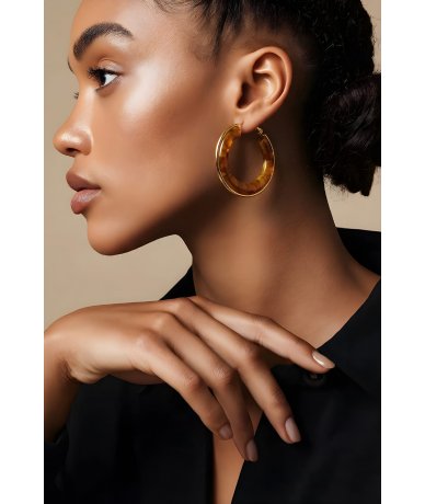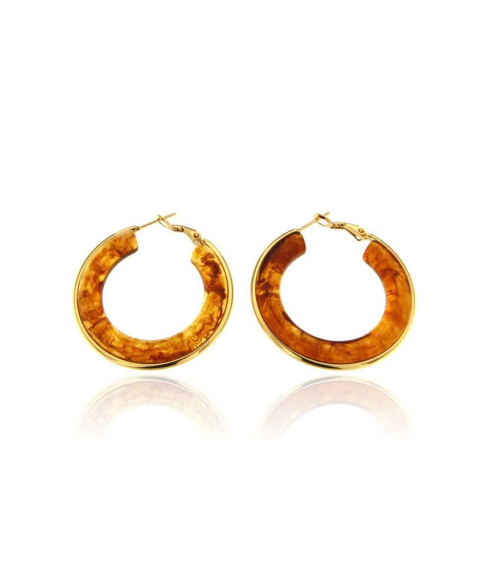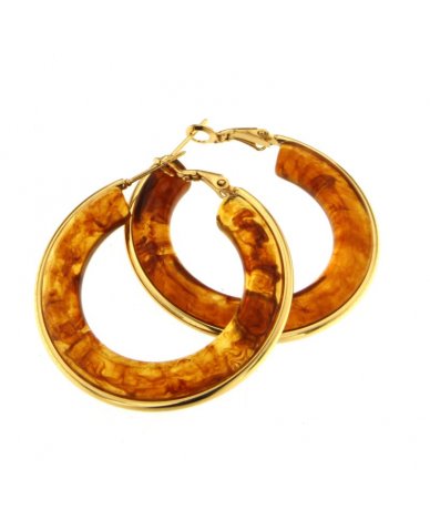 Orecchini cerchi in acciaio inox placcato oro 18k con anello in resina colore marrone