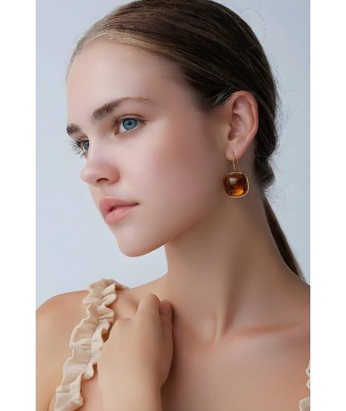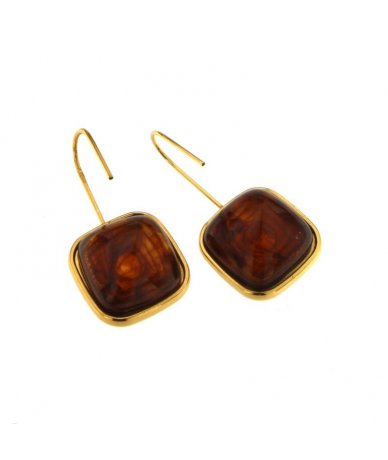 Orecchini amo quadrati bombati in acciaio inox placcato oro 18k con resina colore marrone
