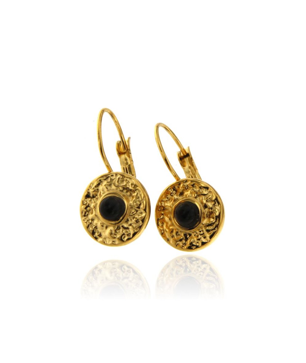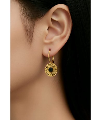 Orecchini tondo monachella in acciaio inox placcato oro 18k con centrale nero