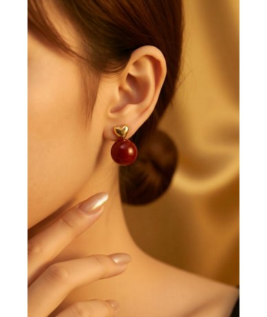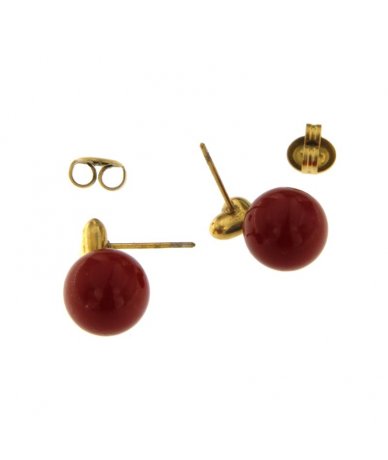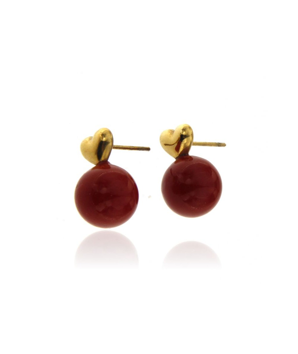 Orecchini cuore con perla rossa in acciaio inox placcato oro 18k