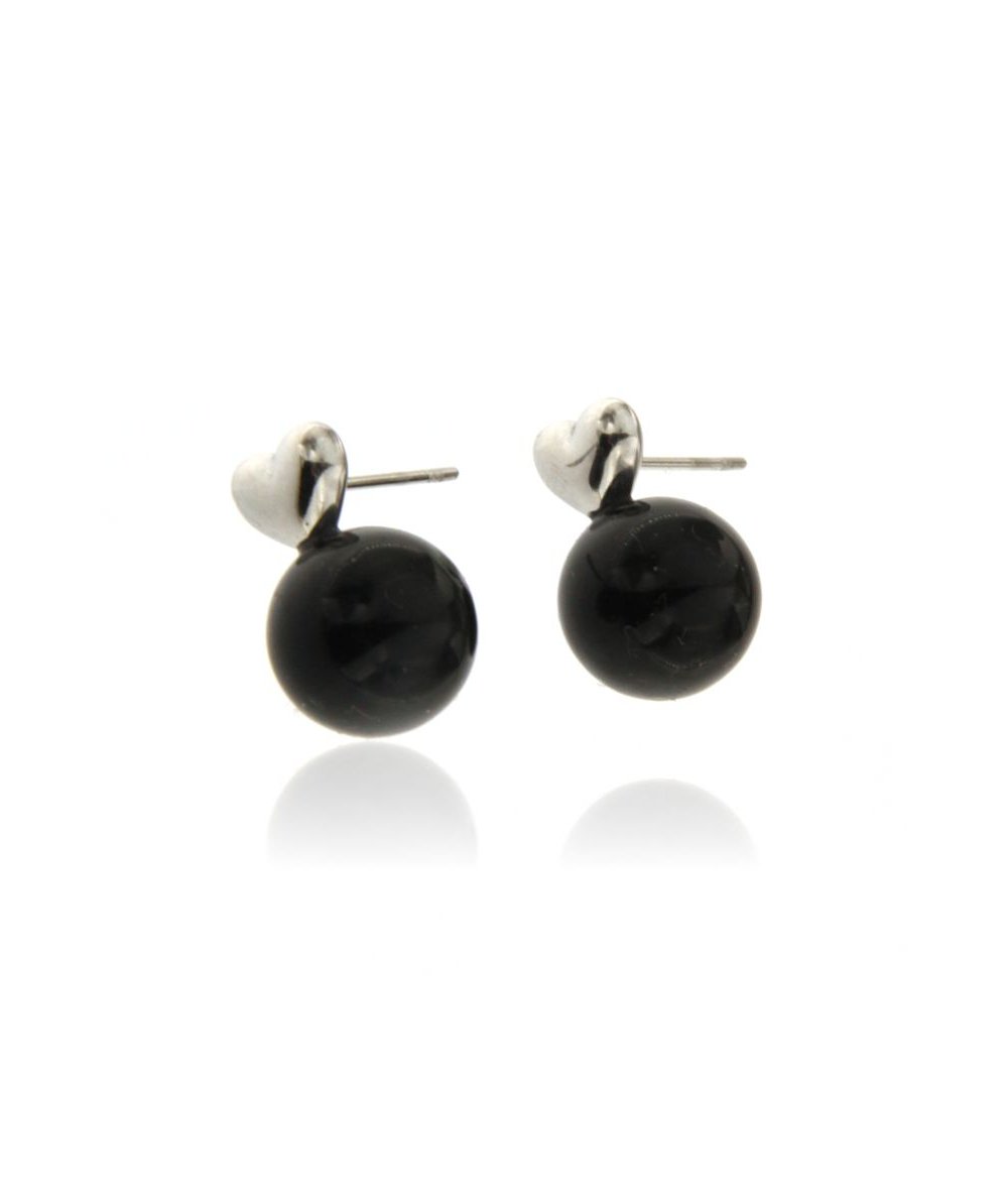 Orecchini cuore con perla nera in acciaio inox