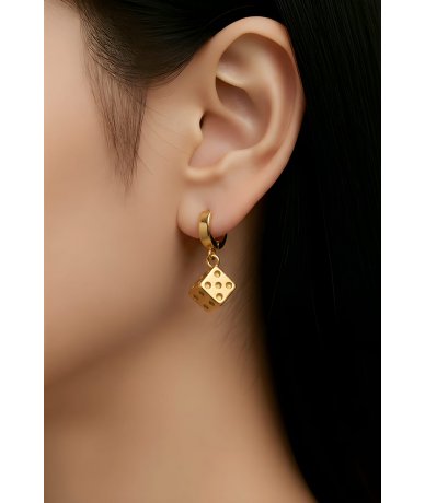 Orecchini con pendenti dado in acciaio inox placcato oro 18k